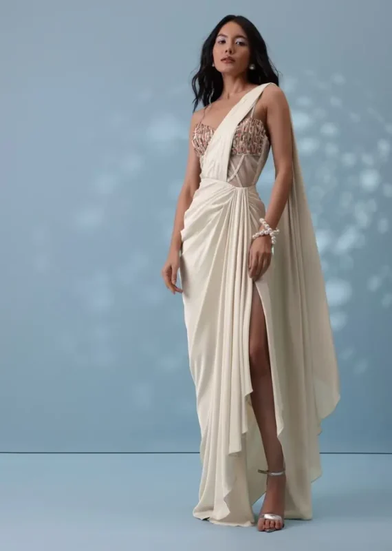 Break the monotony of traditional draping—experiment with layered textures, bold blouses, and unique silhouettes like high-low hems or crop tops paired with sarees to elevate the look.